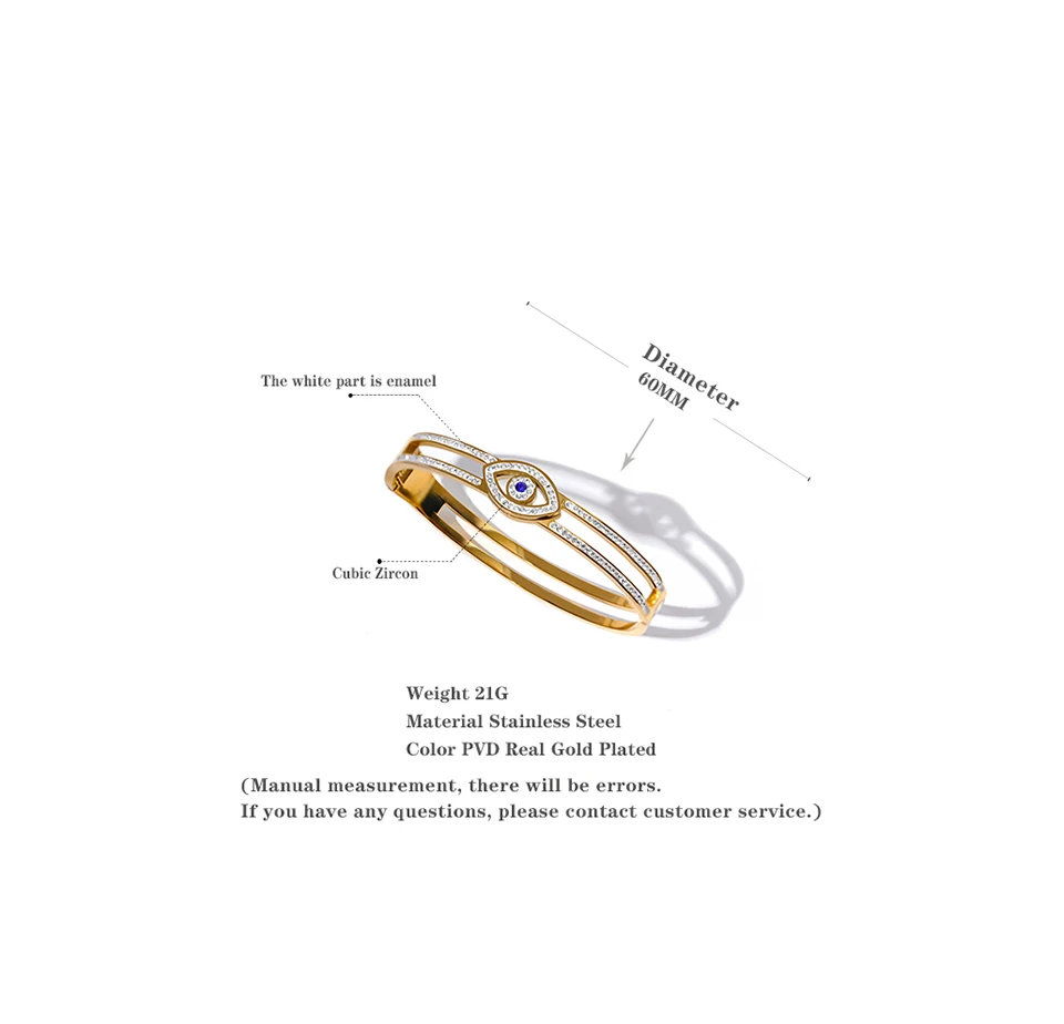60mm Cubic Zirconia Eye Bracelet – 18K Gold PVD Plated Stainless Steel Statement Bangle