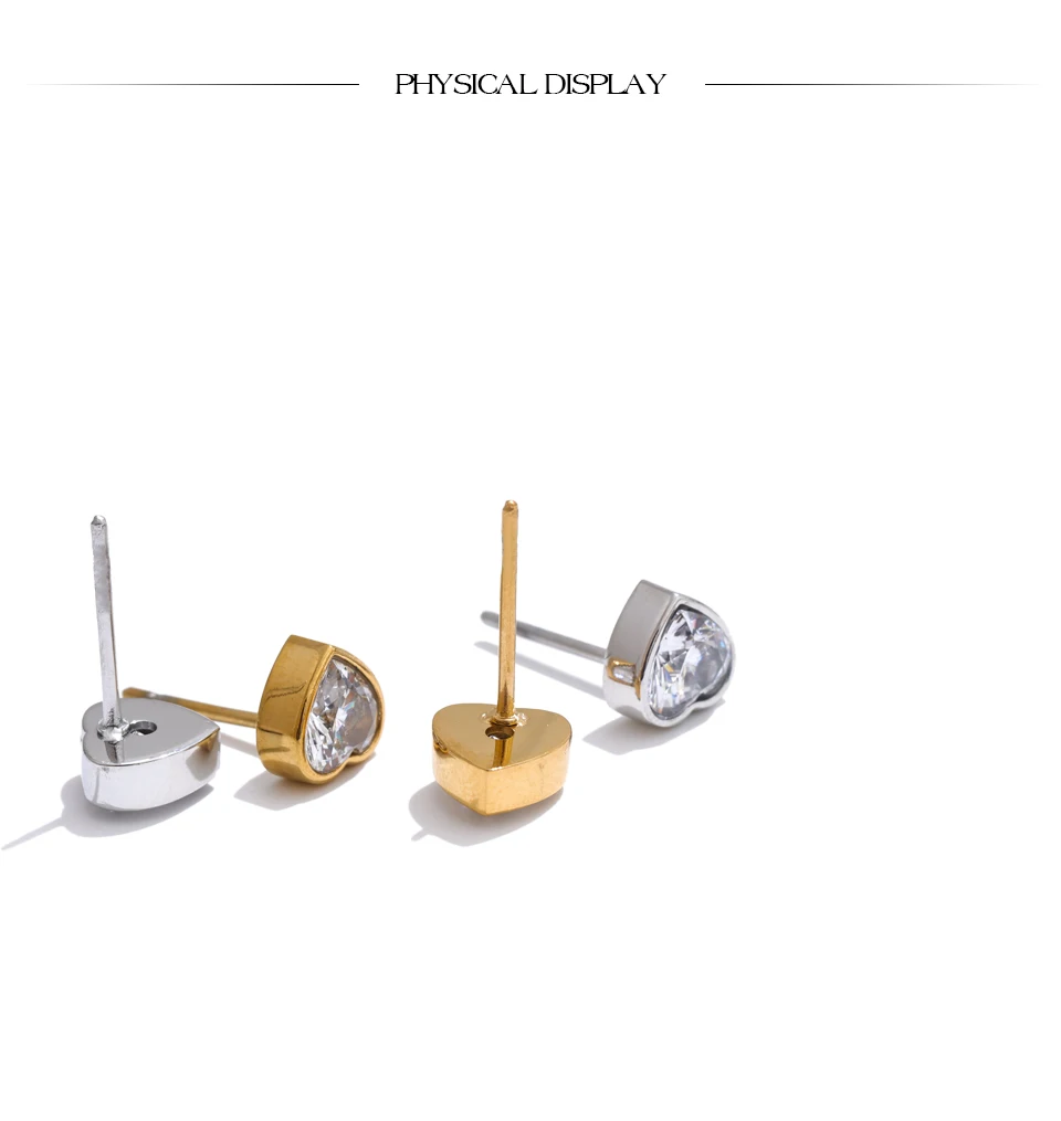 Delicate AAA Bling Cubic Zirconia Heart Stud Earrings – 18K Gold PVD Plated Stainless Steel Jewelry