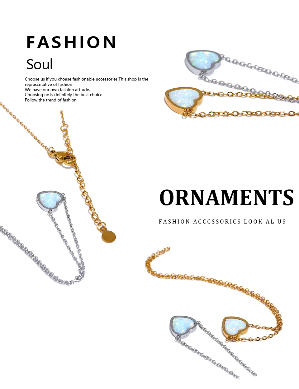 Natural Australian Opal Heart Pendant Necklace – 18K Gold PVD Plated Stainless Steel Delicate Jewelry